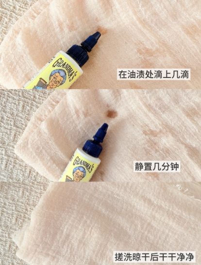 了解完两款产品的区别,我们再来看看“奶奶的秘密”衣物去渍剂到底怎么用,其实超简单: